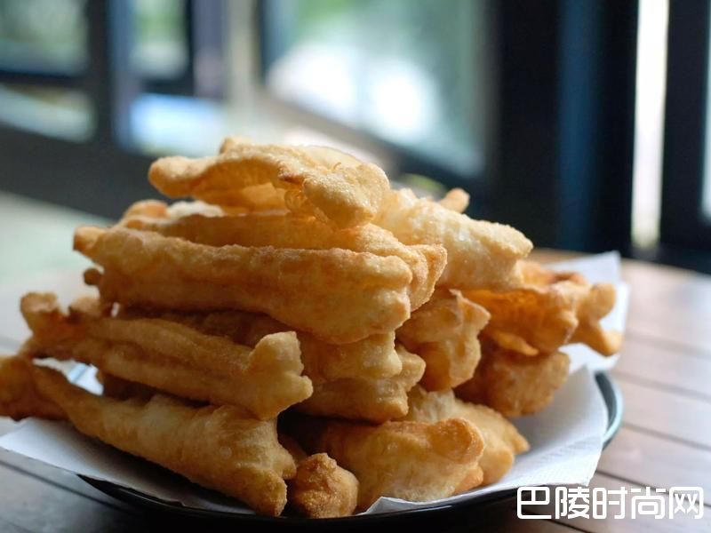 6预备一锅热油约175度,双手轻力拉长面团,立刻放入热油中。面团一入热油中,会开始涨大,用木筷子不停反动油条,炸至金黄色即成!(约1分钟)