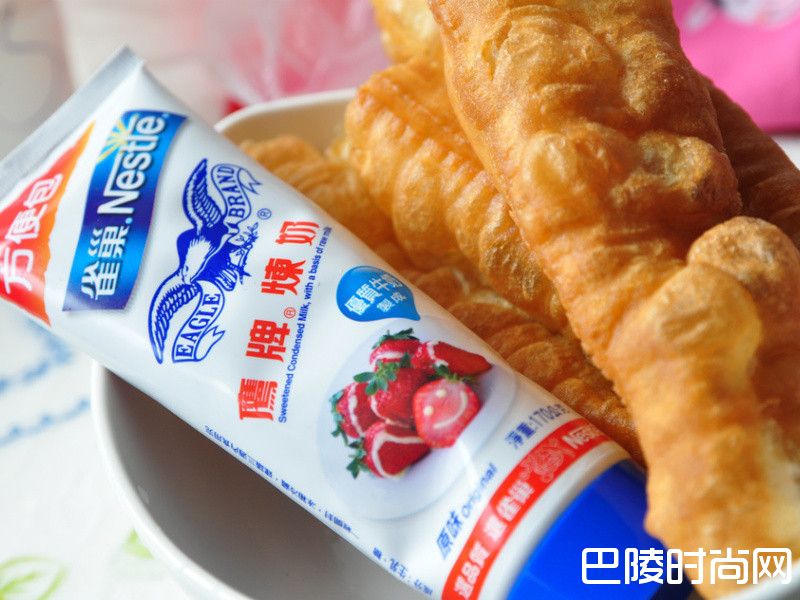 2再来取出油条与【鹰牌炼奶 】PS:不要使用老油条,老油条比较油腻感喔~