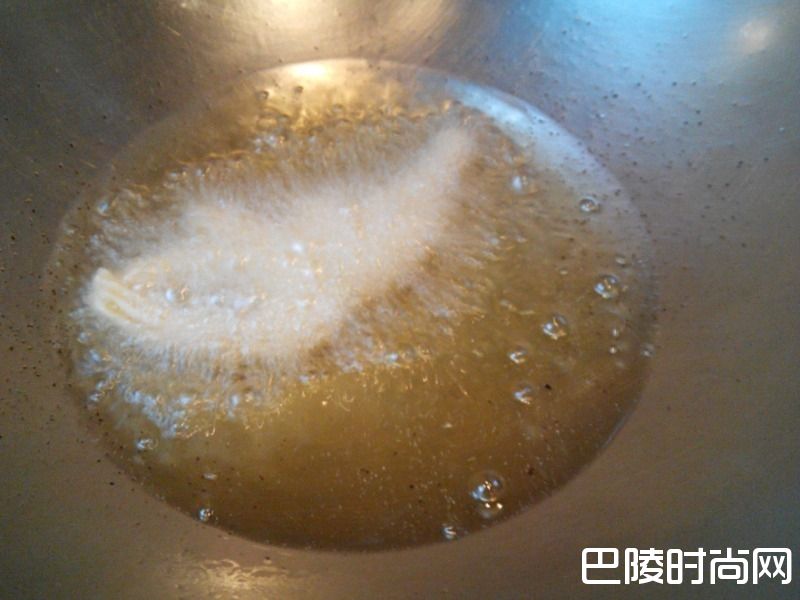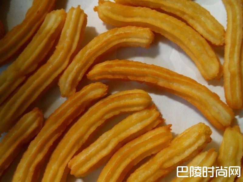6取炒菜锅放入适量的油 油热后放入吉拿棒 炸至微金黄色起锅 用吸油纸吸取多余的油