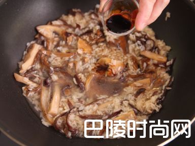 5加入水、老抽、豉油及盐煮沸,持续搅拌防止糯米饭黏底