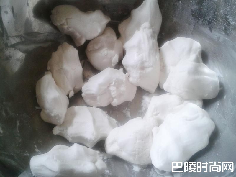 2将糯米粉及暖水拌匀成粉团,分成小份,盖上湿布盖以防粉团变干