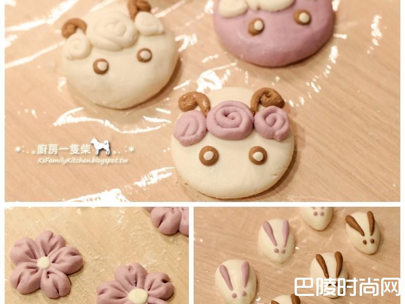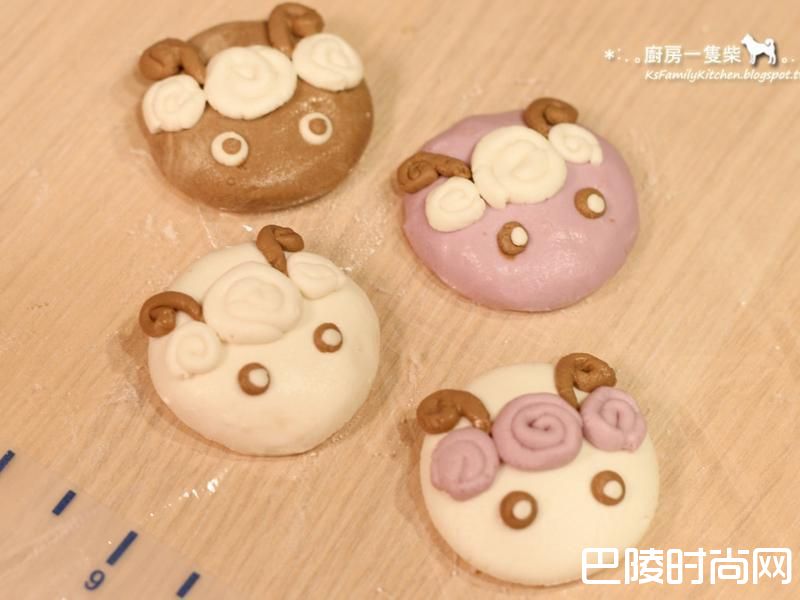 7【小羊汤圆】做法:① 糯米团搓成圆球后稍微压扁,作为「小羊脸」。② 取少量不同色的糯米团,搓成细长条状后再绕成螺旋形摆上,作为小羊的「卷卷浏海」。③ 取少量咖啡色糯米团搓成细长条状后,从一端稍卷起,作为「羊角」黏上。④ 再以白色/咖啡色糯米团搓成小圆点上,作为圆滚滚的「小羊眼睛」即可。