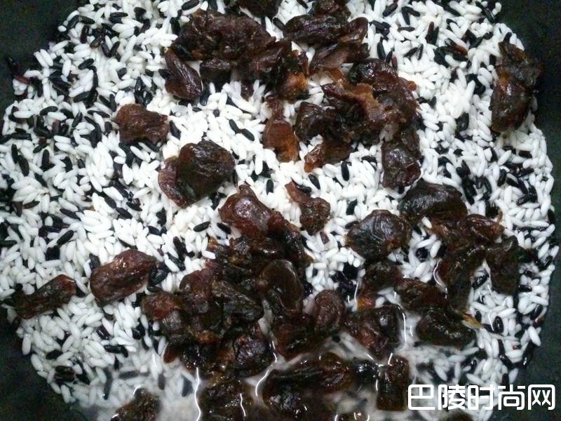 4完成。如果试做时怕饭煮不熟,黑糯米可先泡水30分~1小时。照片上米粒比较白的,就是白糯米唷。