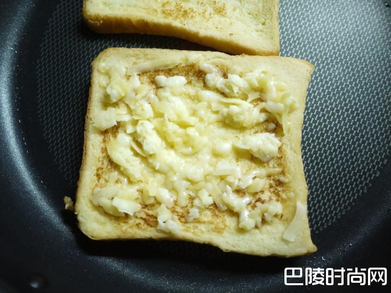 5其中一片吐司铺上乳酪丝