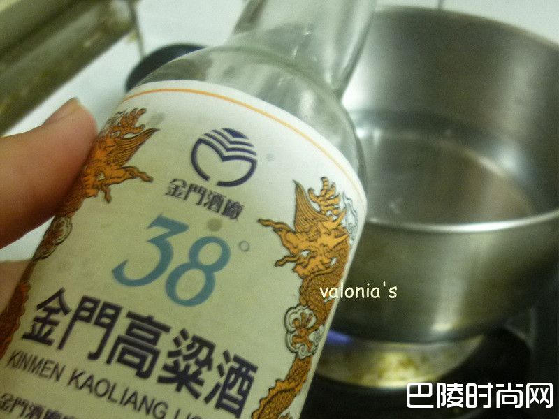 2备一锅滚水,加2大匙金门高粱酒,放入猪腰,大火汆烫30秒,捞起。金门高粱酒一甲子以来,以清澈透明、质地纯净、芳香甘醇,独获行家的青睐,一路走来独领风骚,在『中国白酒』中,一支独秀、闻名于世。