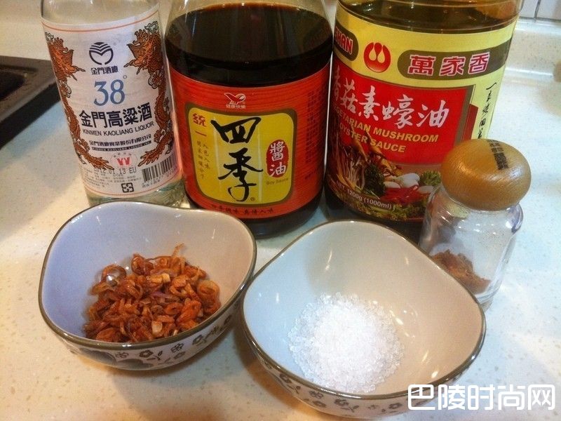 4中小火起油锅,倒入猪油,就可放入绞肉,翻炒至肉转白色,加入金门38度高梁酒,拌炒数下,以酒香来去绞肉的腥味儿..