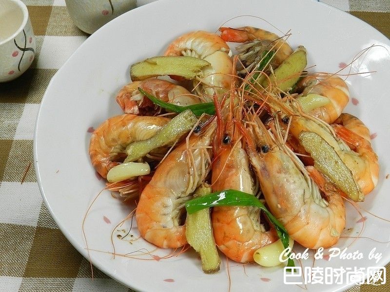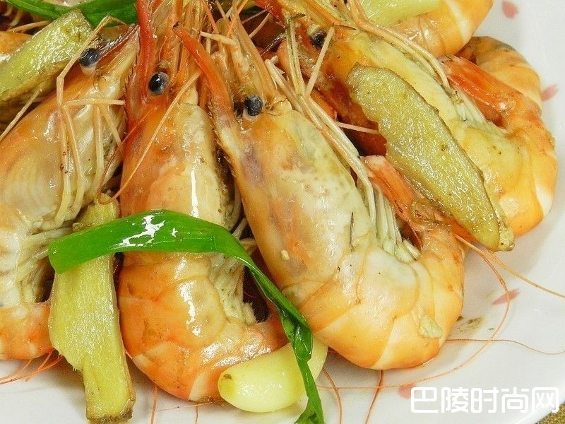 3炒到有点偏红后,加入酒跟水,将虾子煮熟,起锅前下盐调味