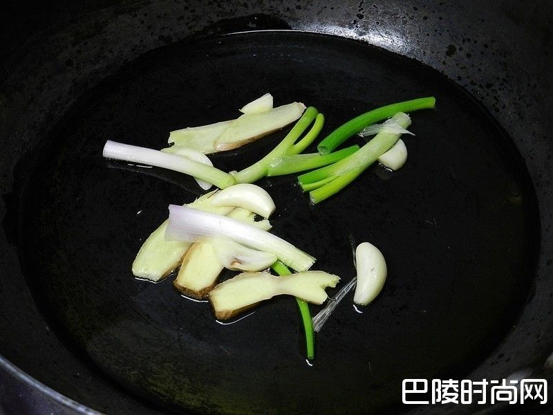 1锅热后加入2大匙油,葱姜蒜入锅爆香