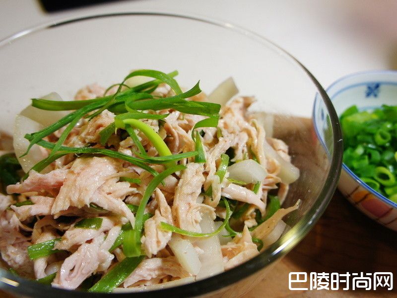 葱油手撕鸡洋葱切丝泡冰水去呛辣