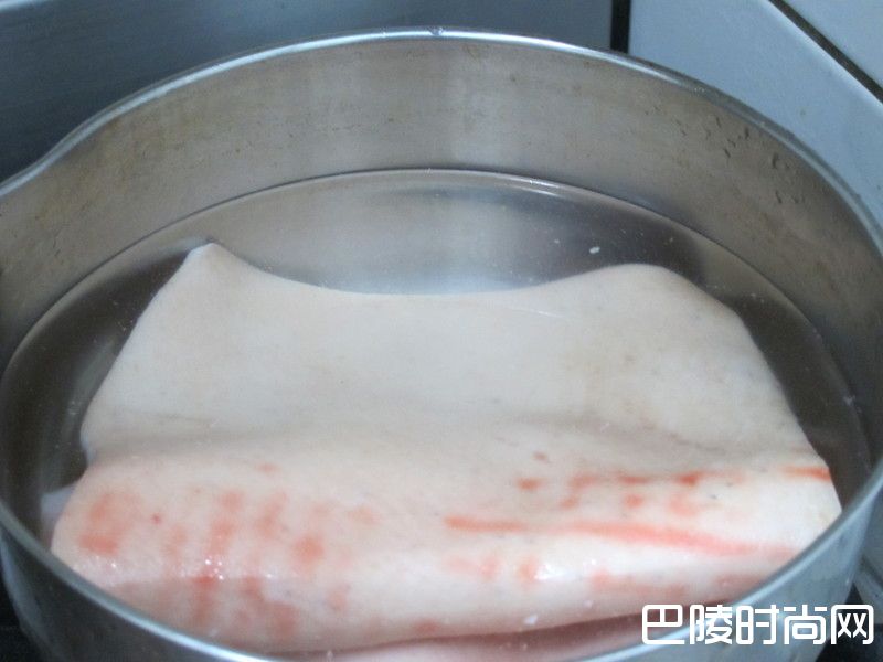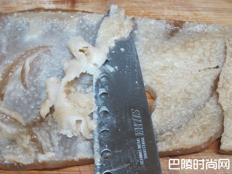 3猪皮取出,去掉白白的一层猪油。