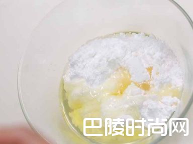 7制作淋面:将糖粉、蛋清拌匀。慢慢加入柠檬汁,并不停搅拌。