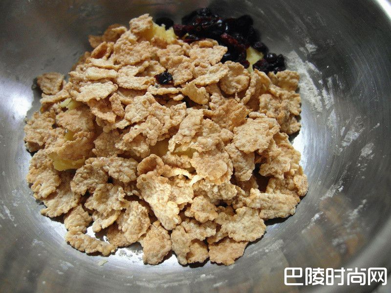 4加入Special K原味麦米片、蔓越莓后,揉成面团
