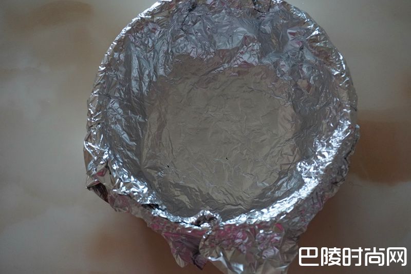 3.将锡箔纸2层叠成一个碗状(为了保险起见,可以多放一层)