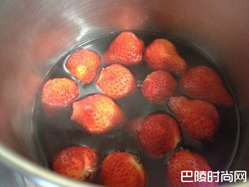 8把新鲜草莓/番茄放入继续煮,注意,煮滚就好,煮太久草莓会烂掉