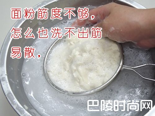 2.搓洗到最后会只剩下面筋,因为会搓得比较散,所以最好拿个漏网接一下