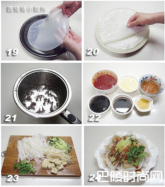 10.将蒸好的凉皮揭下来,如此重复做完所有的面浆,我大约做了5张直径22cm的凉皮,中间用保鲜膜之类的东西隔开保存以便取用