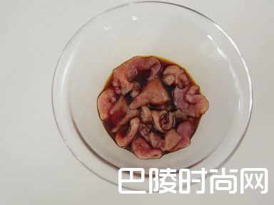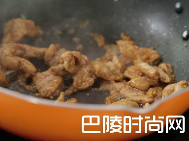 1用生抽和绍兴酒腌制猪肉10分钟;