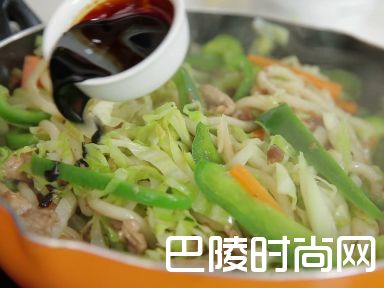 3将卷心菜炒熟,取出备用;然后将胡萝卜和青甜椒炒熟,取出备用;
