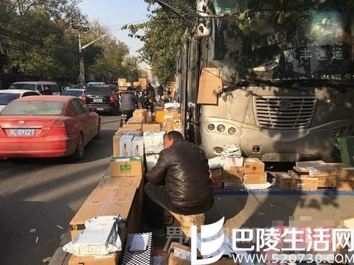 双11后,中国传媒大学外的快递占满了人行道