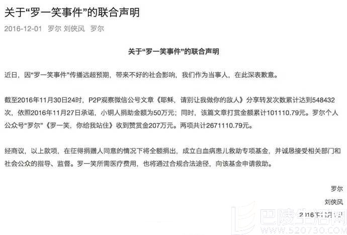 还没完,下午罗尔又道歉,然后称所募得的367万捐款全部捐出,成立专项基金,罗一笑的治疗费用也从中申请。