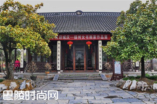 扬州是中国的月亮城,扬州赏月的地方很多,月观就是其中之一。月观坐西朝东,前临开阔的湖面,每当皓月东升,凭栏而立,天上水中的两个月亮交相辉映。月观中的海梅家具也很有特点,雕刻的内容都和赏月有关。