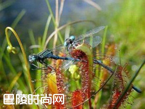 好望角茅膏菜是生长在南非的一种食肉植物。好望角茅膏菜比捕蝇草的功效更好,因为它上面由粘性触须覆盖,伺机捕获降落在它上面的昆虫,堪称世界上90多种食虫植物中的翘楚,在植物界中素有“狩猎之王”的美誉,这种罕见的植物原产于南非的好望角省。