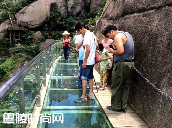 饶城后院灵山是奇石的海洋,为了多角度感受奇石的美,灵山架起了索道,修建了8.5公里栈道,在灵山华表峰尽头还建了长23.8米的玻璃栈道,可谓步步惊心。 在风起云涌之际,人们走在玻璃栈道上能强烈感受到“乱石穿空,惊涛拍岸,卷起千堆雪。”的气势。 勇敢的人们大踏步走在玻璃栈道上有若神人,可以俯瞰天下河山。