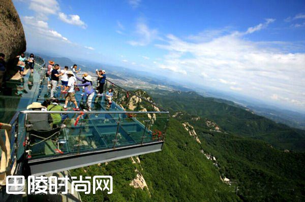 悬挑长廊桥云端向外悬挑26.68米,比举世闻名的美国科罗拉多大峡谷玻璃廊桥悬挑部分还长5米多。抗强震 整个悬挑部分钢箱梁要用500吨钢材,同时还在内部增加了抗风的阻尼器,可抗8级以上地震。透视好 廊桥的地面、护栏采用的是3层夹胶超白玻璃,具有一般玻璃达不到的透视效果。承重高 这种玻璃每平方米承重高达500公斤。特别是SGP高强度胶安全系数非常高,即使玻璃损坏了,依靠胶的张力人踩在上面也不会垮塌。