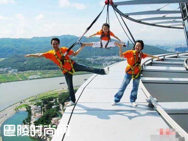 澳门旅游塔高达338米,观景廊上甚至没有任何防护栏,游客只能先系上安全绳,然后尽可能靠近观景廊边缘,测试自己的胆量。那些真正的勇敢者甚至敢从边缘跳伞而下。