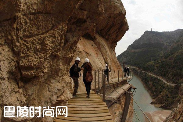 西班牙南部马拉加附近国王步道整个步道长约7公里,其中木板人行道长2.9公里,有“全球最惊险步道”之称,因为它位于马拉加省埃尔乔罗河上方约100米高的悬崖壁上,宽度只有一米。需要大约4到5个小时,才能走完整个步道。