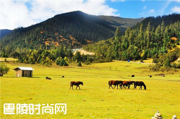 "鲁朗"藏语意为"龙王谷",是龙王爷居住的地方,也是"叫人不想家"的地方。区内树满青山、河流纵横,有规模巨大、终年碧绿苍翠、林木葱茏的原始森林和漫山遍野的杜鹃花。