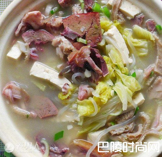 把羊的心,肺、肝、肠、血等洗净、煮熟切碎、配上花椒、辣椒、盐、大蒜、葱、姜等作料,加上一些煮肉汤,做成“羊杂”,加上粉条一起吃。