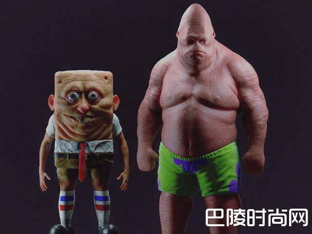但是一位3D艺术家却让那个曾经可爱的海绵宝宝和派大星变成了这样——