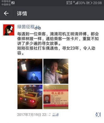 2015年7月,华西都市报记者肖茹丹,一次偶然,搭了王师傅的车,寻女的故事,进而被扩散到全国。2017年7月,时隔两年后,华西都市报记者李智,在报社楼下打滴滴,再次偶遇了王师傅,再次扩散他的寻女故事。