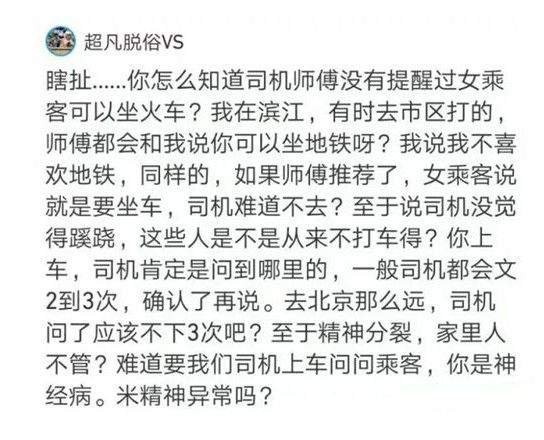 对此,网友看法不一。有人认为既然双方已经达成协定,你情我愿,司机没错,无需退钱。但也有网友认为,如果女子确实患有精神分裂,无民事行为能力的话,那么司机应该退一部分钱。