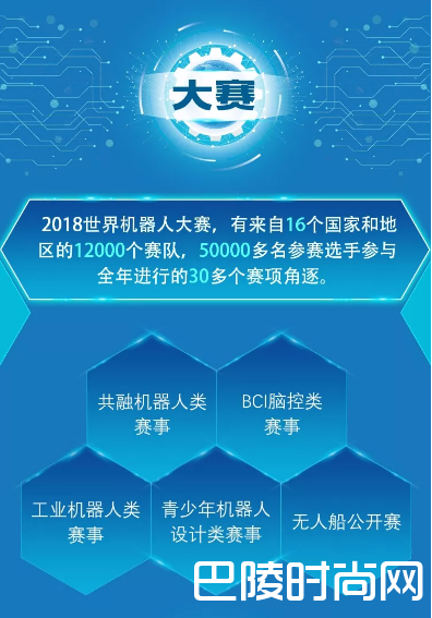 同时,世界机器人大赛也将同期上演“巅峰之战”。本届大赛共设有BCI脑控类、共融机器人类、工业机器人类、青少年机器人设计类和无人船公开赛五类赛事,将吸引来自10多个国家和地区的12000多支参赛团队、50000多位参赛选手同台竞技。