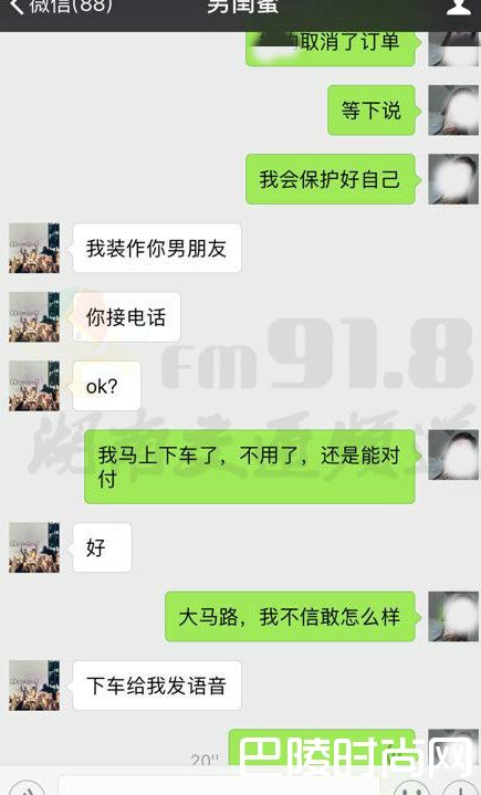 其二,自己出门可以跟自己的好朋友发个信息,说自己坐车去哪哪哪,然后,跟朋友聊天,到达目的地去在发信息给她,或者说自己真的遇到的话,就直接在滴滴平台上举报她,或者说,直接就跟朋友说自己在滴滴上遇到的什么司机是什么样的人,拍车牌照给自己的朋友。