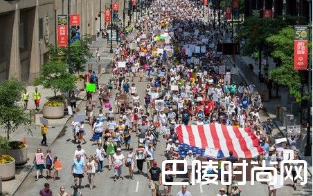 6月30日是临近美国独立日的小长假第一天,很多人原本打算外出郊游。然而,美国政府一纸致使“骨肉分离”的移民政策打乱了他们的计划。当天,芝加哥气温飙升至近40摄氏度,5万多市民走上街头,手举标语海报,高喊口号,抗议特朗普政府移民政策。