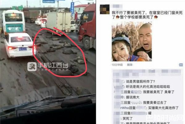 莫名搞笑,从寝室去拿快递闻了一路屎臭。江西科技师范大学一名女同学表示,她从下午5点左右就闻到了恶臭,起初不知是什么原因,后来在网上看到大家都在传是隔壁邻居南昌大学化粪池炸了,她也信以为真。