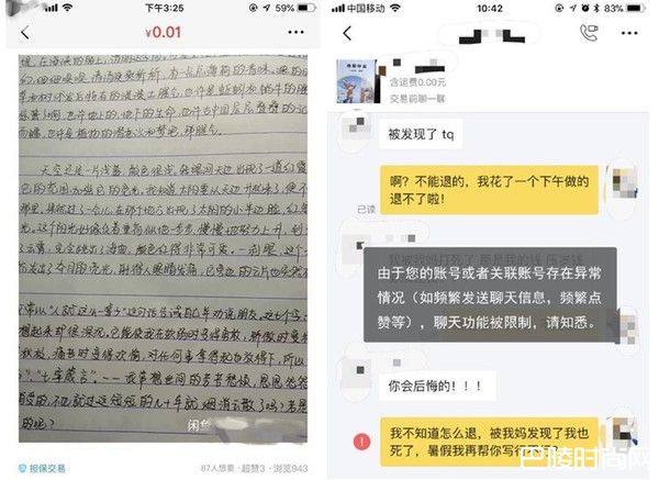 综合大陆媒体报导,这名13岁女童寒假期间盗用母亲帐号登陆网站,帮人代写作业收费,因为字迹工整,网路评价好而陆续接到订单,其中一名买家被老师抓包发现,气得回过头来要求女童退费,女童先以花了一个下午做的为由拒绝,之后才解释被我妈发现我也死了,暑假我再帮你写行不行,但最后仍遭买家检举,该帐号也因为发布违禁商品被官方封锁。