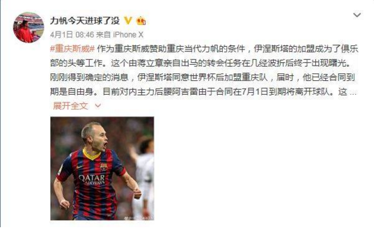 但值得注意的是,早在去年,伊涅斯塔就和重庆斯威扯上过关系,要论人脉,无论是恒大、权健还是申花、华夏,可都不重庆的对手。