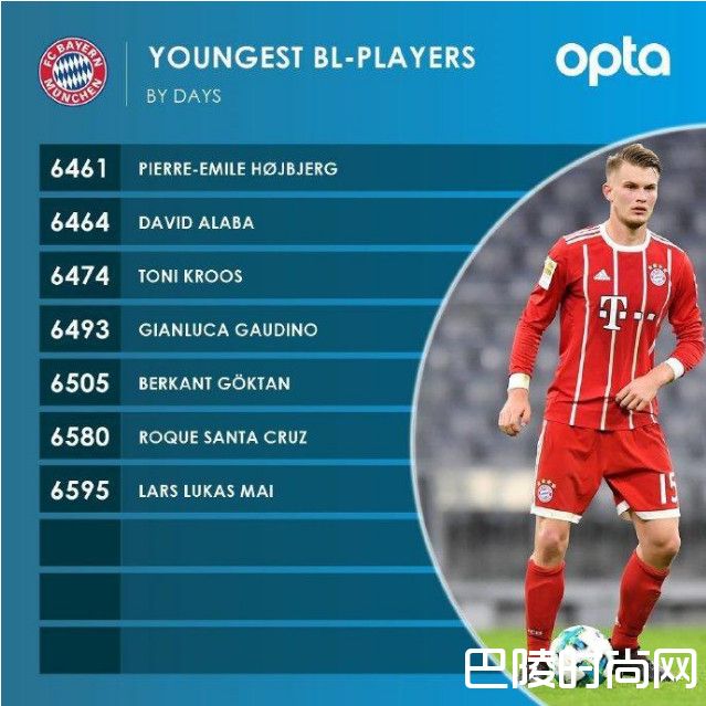而在拜仁历史上,卢卡斯-迈只能排名德甲首秀第7年轻球员,他落后于赫伊别尔、阿拉巴、克罗斯、高迪诺、格克坦以及圣克鲁斯。