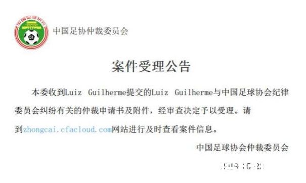 足协在官网表示,仲裁委员会已经受理了穆里奇的仲裁申请,“本委收到穆里奇提交的穆里奇与中国足球协会纪律委员会纠纷有关的仲裁申请书及附件,经审查决定予以受理。”