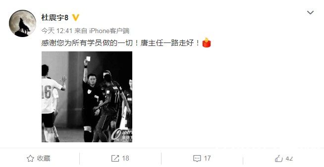 得知此消息后,一些球员也对唐锟的逝世表示了哀悼。长春亚泰球员杜震宇写道:感谢您为所有学员做的一切!唐主任一路走好!
