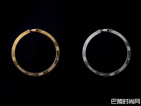 而这款人字纹(Herringbone)的项炼,使用纯银并镀上18K金制成,设计部份,仅有AMBUSH与Nike的Logo置于项炼上,而项炼的颜色有2个,分别为金色与银色。