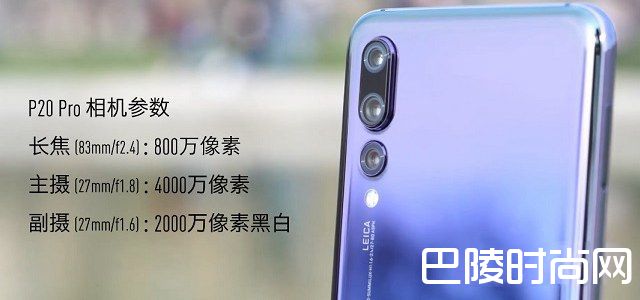 华为P20 Pro后置2000万黑白+800万长焦+4000万彩色三颗摄像头,支持OIS+EIS防抖、徕卡认证、960fps高速摄像,支持3倍光学变焦,5倍三摄变焦,10倍数字变焦;支持最高102400的感光度,是目前旗舰机中,相机规格水准最高的一款手机,可以拍出像素更高的照片,媲美单反相机。