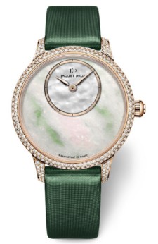 雅克德罗(Jaquet Droz)推出全新时分小针盘(Petite Heure Minute)限量版,礼赞情人节。这款腕表呈现独特迷人的色调,臻美雅致,弥足珍贵。这款钟表杰作采用最早发现于19世纪中期