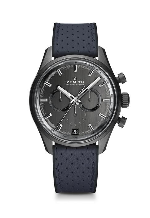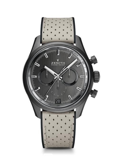 El Primero旗舰系列路虎揽胜特别版展现双方对超卓品质的不渝追求,呈献出一枚拥有标志性轮廓、魅力非凡、技术先进且性能卓越的匠心力作。为了纪念与路虎揽胜的合作,真力时在灰色拉丝表盘上镌刻以”Zenith Range Rover”字样,时针和时标均进行镀铑处理并覆以夜光涂层。