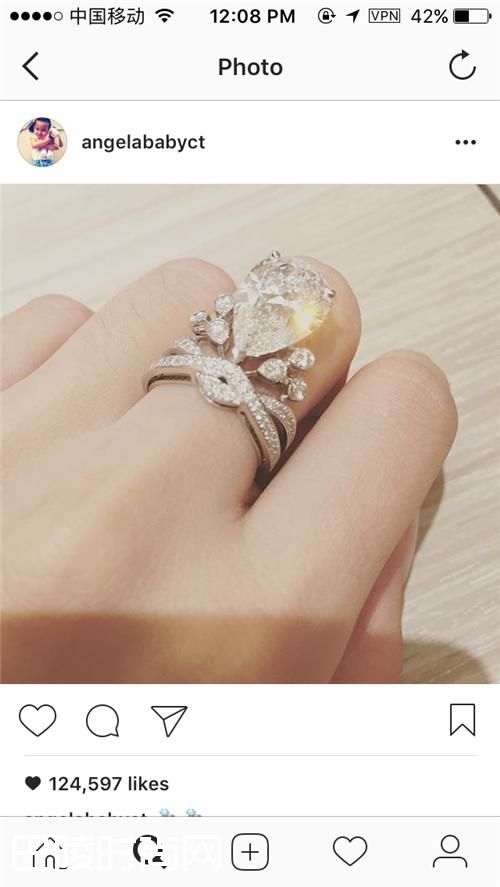 而婚后Baby还曾在节目录制等多个场合佩戴这枚钻戒,可谓珍爱至极。