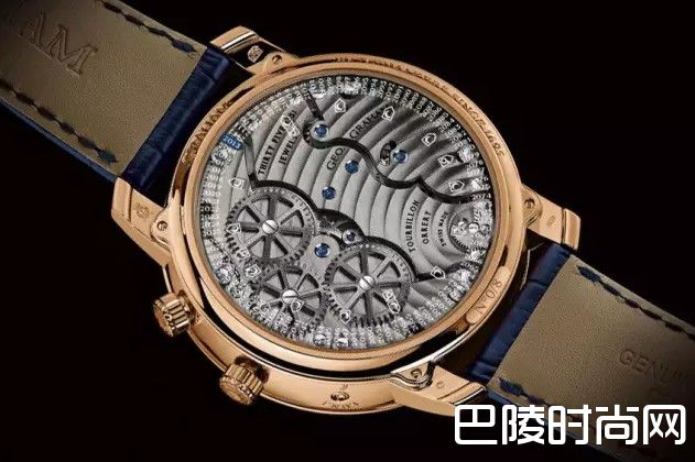 机芯是G1800 Tourbillon Orrery,其工作频率为3Hz(21,600bph),动力储存三天。表壳大48mm宽(17.6mm厚),由18k玫瑰金制成。防水性是50米,我相信这样的手表也没人敢去佩戴着游泳吧。